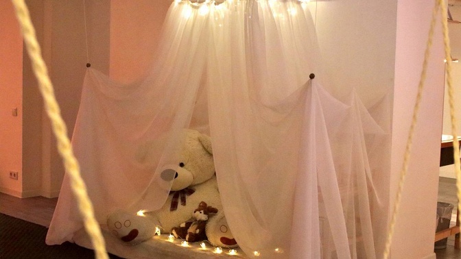 — проектор с большим экраном и качеством изображения Full HD (есть возможность устроить лежачий кинозал) — уточняйте по телефону;