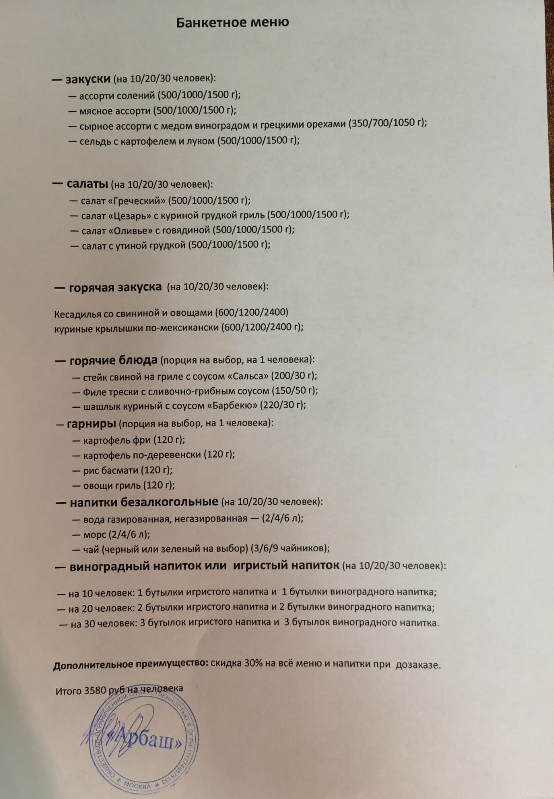 — Скидка 50% на банкет для компании из 10 человек (17 900 руб. вместо 35 800 руб.)