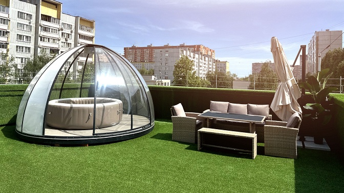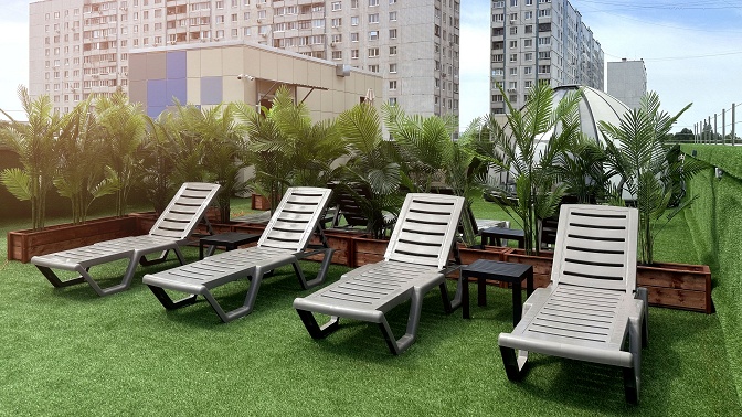— в комплексе доступна летняя терраса с шезлонгами и баром;
