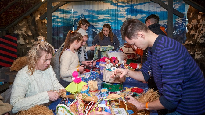 — игры и забавы, кулинарные мастер-классы, праздничные экскурсии в избах, ярмарочные ряды, народная музыка и интерактив с масленичными героями на свежем воздухе;