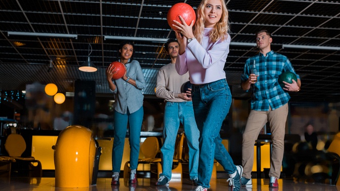 - Боулинг — увлекательная спортивная игра, цель которой — сбить как можно меньшим количеством шаров, пускаемых по деревянной дорожке, как можно больше кеглей. Играть в боулинг принято большой компанией, ведь подвижная и азартная забава ассоциируется с веселым времяпрепровождением.