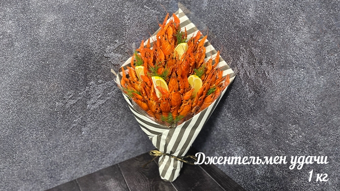 — Скидка 30% на букет из раков «Джентльмен удачи» (1 кг) (2590 руб. вместо 3700 руб.)