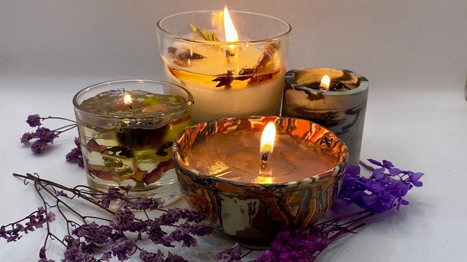 — работа с разными видами воска (соевый, гелевый, парафин и вощина);