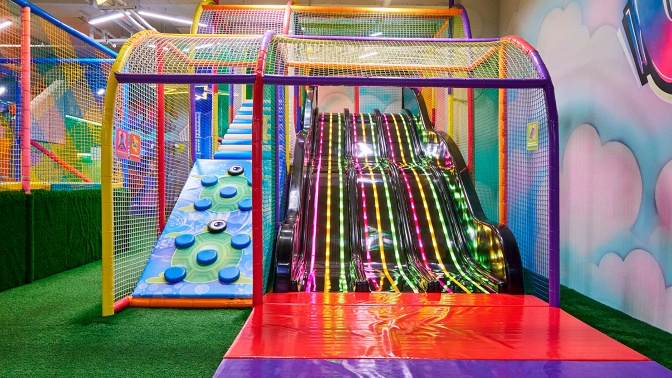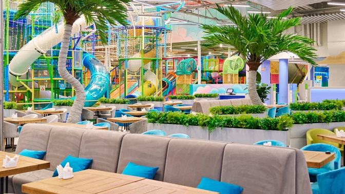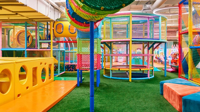 Теперь, пока мама и папа гуляют по супермаркету или смотрят кино в кинотеатре, ребенок может весело провести время на игровой площадке.