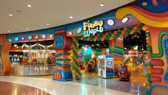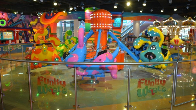 Funky World — развлекательное заведение с продуманным разделением пространства на тематические зоны для детей разного возраста, аттракционы, развивающие игры. Тут есть интерактивные образовательные зоны, батуты, горки разных цветов и размеров, сухие бассейны, кинетические песочницы, карусели («Джунгли», «Прыгающие собачки» и «Фиеста»), аттракционы («Кранмашина», «Карнавал» и «Паровоз»), качалки («Машина Magnum», London Bus, «Субмарина», «Пожарный грузовик», «Фермерский трактор» и «Лошадка»), место для отдыха родителей.