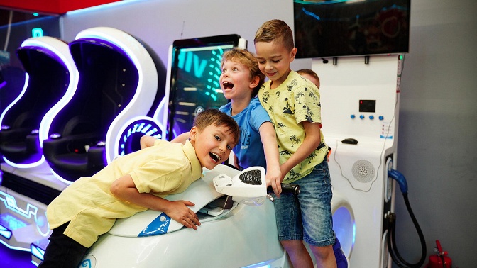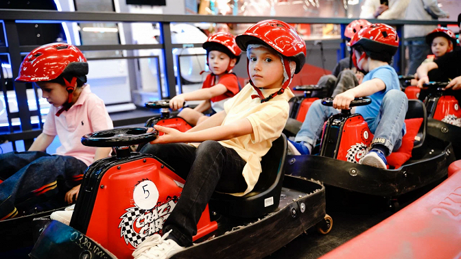 — гонки по трассе и обучение трюкам (21 минута на каждого ребенка);