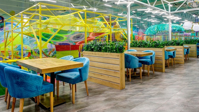 В красочном лабиринте легко потеряться, а малыши наверняка увлекутся исследованием запутанных ходов, лесенок, коридоров и горок. В просторной батутной зоне с упругими сетками и ямой, полной мягких поролоновых кубиков, можно всласть напрыгаться, накувыркаться и с пользой потратить нескончаемый запас энергии. Так, всем гостям наверняка понравится лазание по тарзанке, катание с горок с сумасшедшими виражами, увлекательные игры на футбольном и баскетбольном полях, спуск с канатной дорожки и покорение головокружительного скалодрома.
