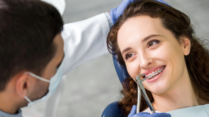 — снятие брекетов в конце лечения;