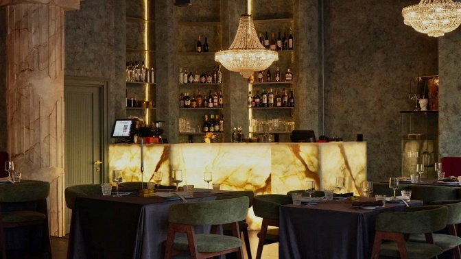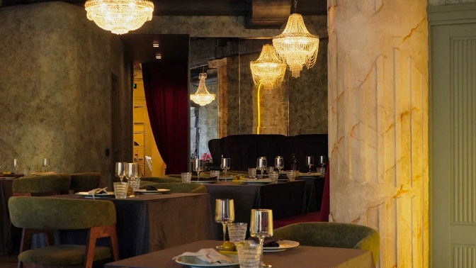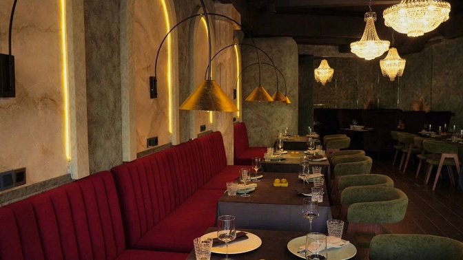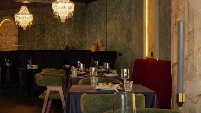 - Вас ждет зал с интересным интерьером и декором, который передает характер заведения и его атмосферу. В этой комфортной обстановке легко настроиться на спокойный отдых и на время забыть обо всех проблемах. Здесь вы сможете обсудить дела с коллегами, пообщаться с друзьями, провести время с семьей или устроить романтическое свидание. Вежливый персонал, быстрое обслуживание, большой выбор блюд и напитков — вы отлично проведете время.