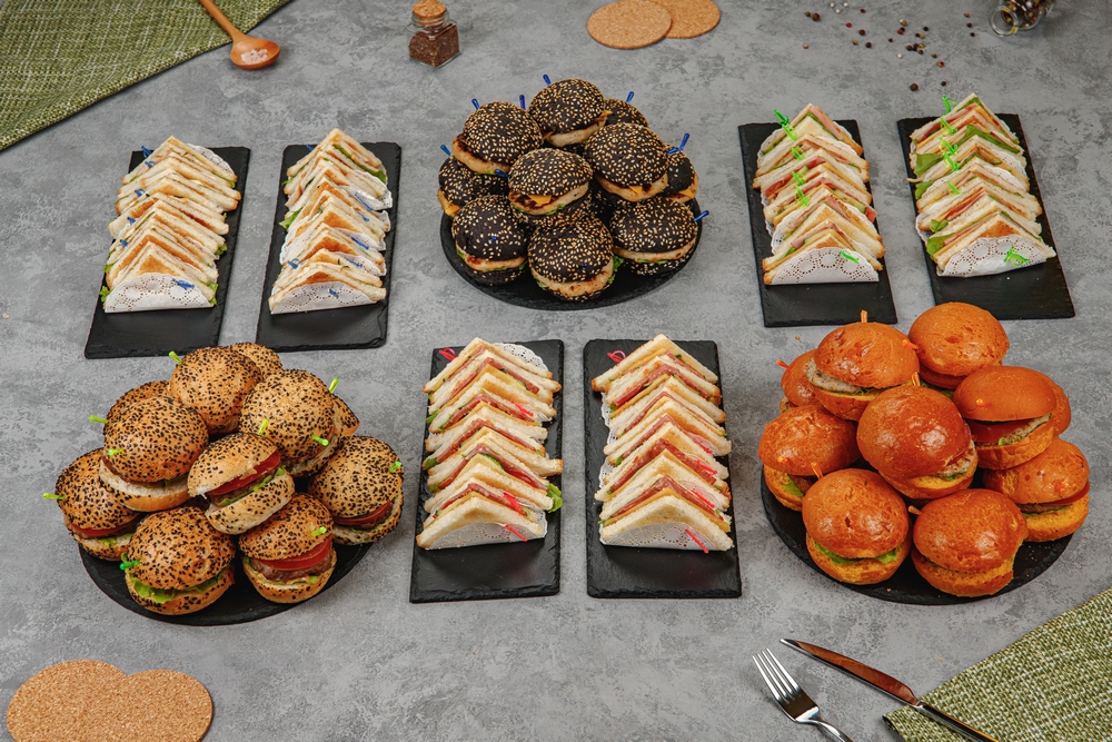 В стоимость купона на фуршетный сет «Ассорти мини-сэндвичей» (1920 г) входит: