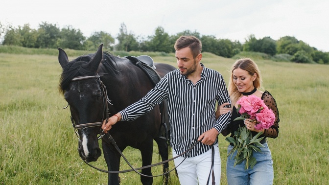 — Скидка 55% на романтическую прогулку на лошадях для двоих (1 академический час) (2700 руб. вместо 6000 руб.)