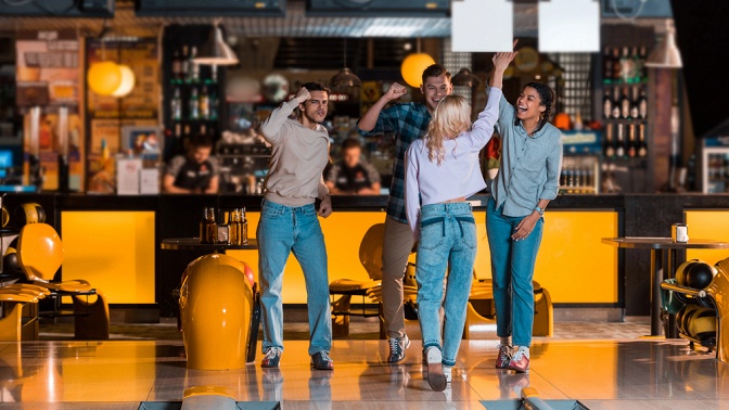 - Боулинг — увлекательная спортивная игра, цель которой — сбить как можно меньшим количеством шаров, пускаемых по деревянной дорожке, как можно больше кеглей. Играть в боулинг принято большой компанией, ведь подвижная и азартная забава ассоциируется с веселым времяпрепровождением.