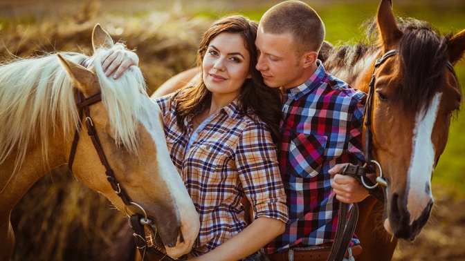 Романтическая прогулка на лошадях: