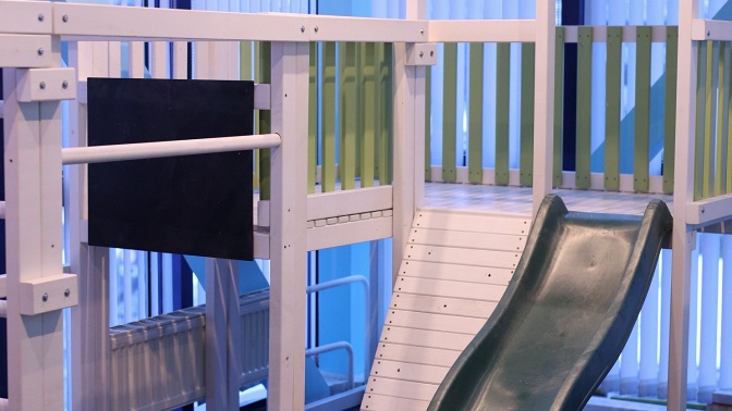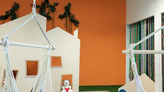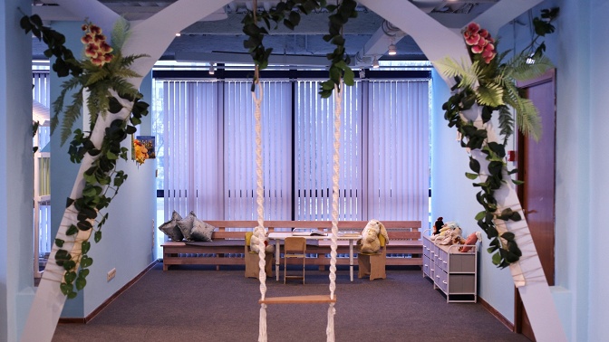 Loft Like на Изумрудной — светлая просторная площадка площадью 105 кв. м с дизайнерской игровой зоной, качелями и батутом, а также со своими ленточным лабиринтом и зеркальным тоннелем.