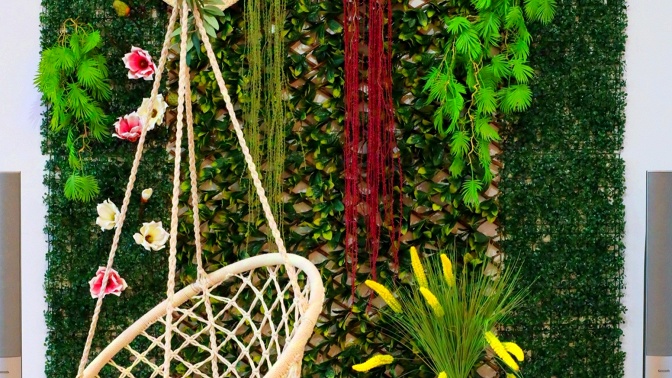 — 2 фотозоны — фитостена с качелями и зеркальный тоннель;