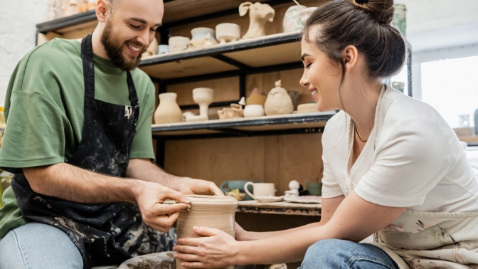 Купон действует на индивидуальный романтический мастер-класс «Свечи, пузырьки и сыр...» для пары с работой на гончарном круге.