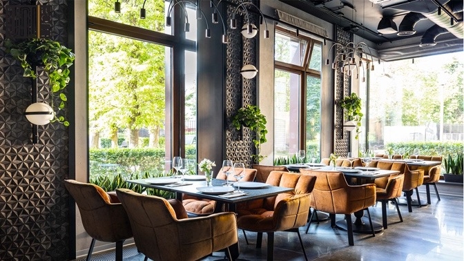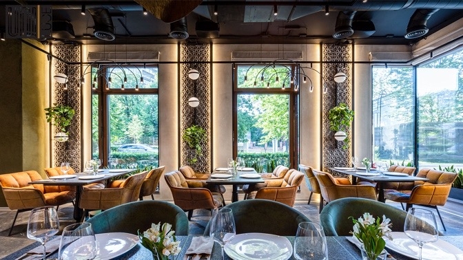 - Вас ждет зал с интересным интерьером и декором, который передает характер заведения и его атмосферу. В этой комфортной обстановке легко настроиться на спокойный отдых и на время забыть обо всех проблемах. Здесь вы сможете обсудить дела с коллегами, пообщаться с друзьями, провести время с семьей или устроить романтическое свидание. Вежливый персонал, быстрое обслуживание, большой выбор блюд и напитков — вы отлично проведете время.