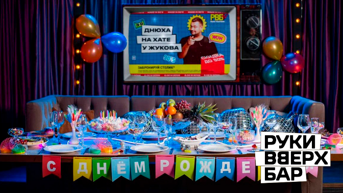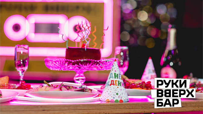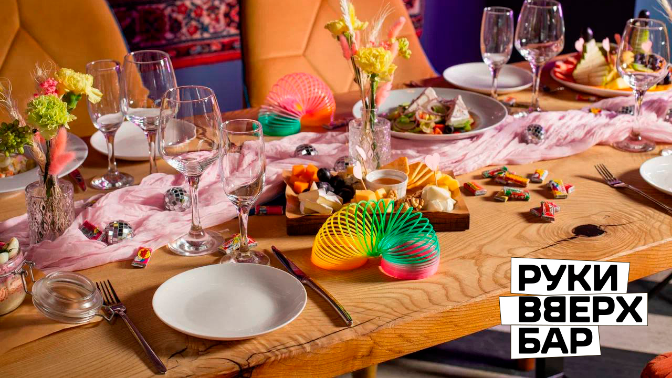 - Бар «Руки Вверх» — это федеральная сеть танцевальных баров, крупнейшая на сегодняшний день в России и СНГ. Здесь воссоздана атмосфера счастливых 90-х и нулевых, чтобы каждый смог окунуться в воспоминания о своей молодости и подпевать любимым хитам.