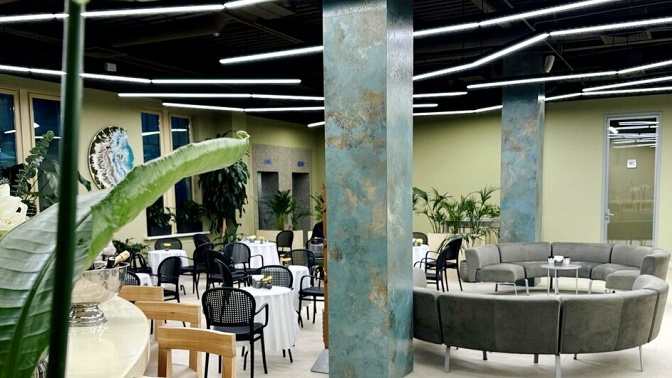 - Вас ждет зал с интересным интерьером и декором, который передает характер заведения и его атмосферу. В этой комфортной обстановке легко настроиться на спокойный отдых и на время забыть обо всех проблемах. Здесь вы сможете обсудить дела с коллегами, пообщаться с друзьями, провести время с семьей или устроить романтическое свидание. Вежливый персонал, быстрое обслуживание, большой выбор блюд и напитков — вы отлично проведете время.