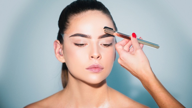— вычесывание бровей в направлении новой формы и коррекция лишних волосков пинцетом.