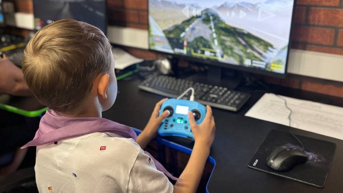 — симулятор (DCL, Liftoff, Liftoff MicroDrones (на выбор) с профессиональным пультом Radiomaster Pocket) — 30 минут;