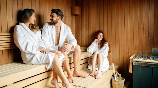 - Посещение сауны благотворно влияет на состояние здоровья человека, настроение и общее самочувствие, помогает бороться со стрессами и усталостью, снимает боли в мышцах и очищает организм от токсинов и шлаков. Обильное потоотделение, которое провоцируется посещением парной, содействует комплексному оздоровлению всех систем организма. Современные исследования доказывают, что люди, которые регулярно посещают сауну, живут дольше и реже болеют ОРВИ, ОРЗ, остеохондрозом, у них в несколько раз снижен риск возникновения патологий суставов, позвоночника, костей.