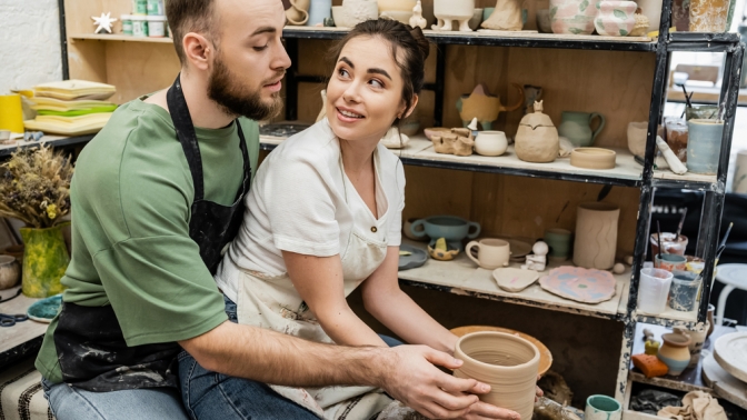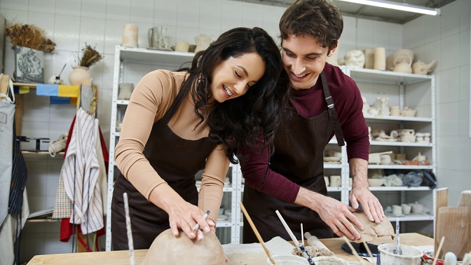 Купон действует на индивидуальный романтический мастер-класс для пары на гончарном круге или по лепке из глины.