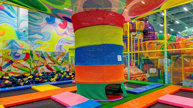 Гостей ждет просторная игровая зона с более чем 30 увлекательными аттракционами, уютные банкетные комнаты для праздников, а также два семейных ресторана, где можно вкусно поесть и отдохнуть после веселых игр.