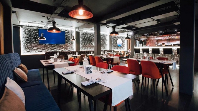 - Вас ждет зал с интересным интерьером и декором, который передает характер заведения и его атмосферу. В этой комфортной обстановке легко настроиться на спокойный отдых и на время забыть обо всех проблемах. Здесь вы сможете обсудить дела с коллегами, пообщаться с друзьями, провести время с семьей или устроить романтическое свидание. Вежливый персонал, быстрое обслуживание, большой выбор блюд и напитков — вы отлично проведете время.