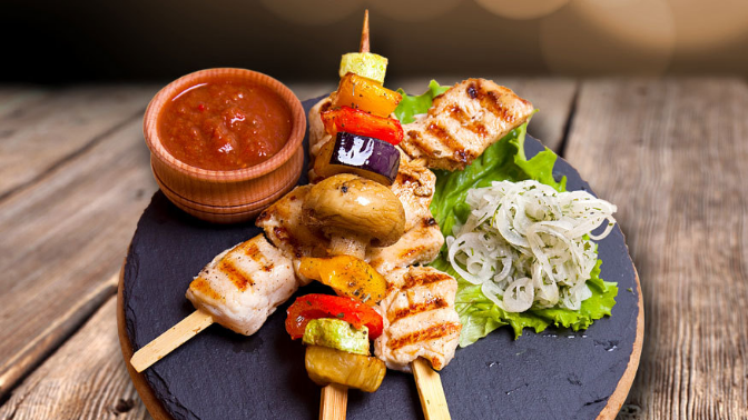 В меню представлено множество сытных блюд из мяса, рыбы и птицы. Также не оставят никого равнодушным свежие салаты, наваристые или легкие супы, нежные десерты. В качестве закуски можно заказать скумбрию холодного копчения с лимоном, икру, шпроты с яичным кремом на гренках, рулетики из семги, куриный рулет, говяжий студень, домашнюю буженину, соленья. Из привычных и простых продуктов можно создать гастрономические шедевры.