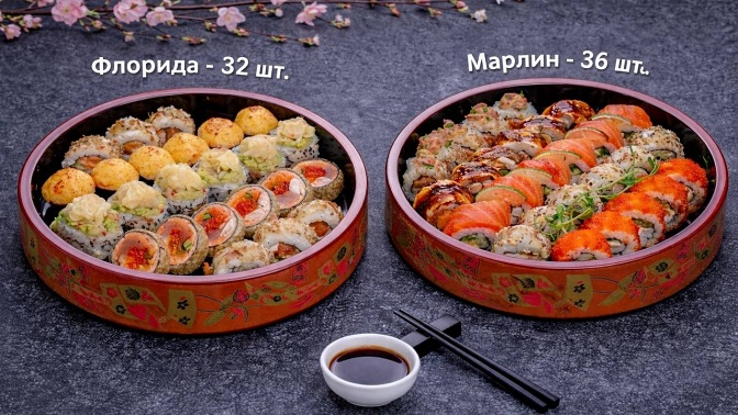 — Скидка 30% на сет «Марлин» («Калифорния с креветкой», «Филадельфия классик», «Сливочный лосось», «Канада», «Татаки») (3500 руб. вместо 5000 руб.)
