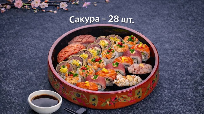 — Скидка 30% на сет «Сакура» («Тар-тар», «Сяке магура», «Темпура магура», суши «Лосось» и «Тунец», гунканы «Креветка» и «Окунь») (2800 руб. вместо 4000 руб.)