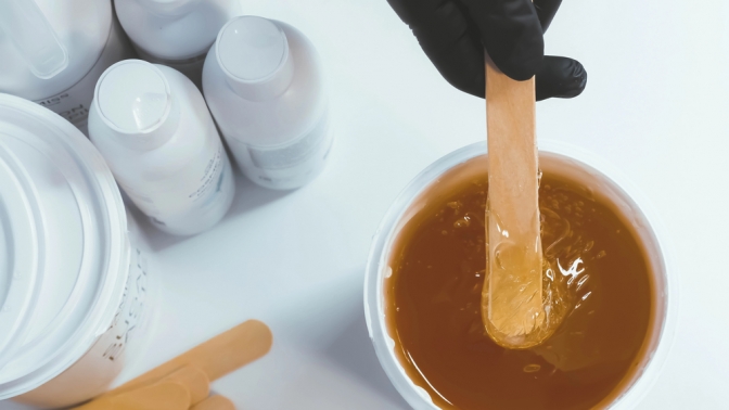 Во время процедуры восковой депиляции на кожу наносится разогретый воск, который после застывания удаляется вместе с волосяной луковицей.