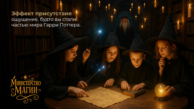 - «Министерство магии» — это квест, в котором вы окажетесь в самом сердце волшебного мира. Огромные залы, бесконечные коридоры, загадочные артефакты и тайные кабинеты оживают, когда двери Министерства закрываются за вами. Теперь только вы и ваша команда способны разгадать секреты этого места.
