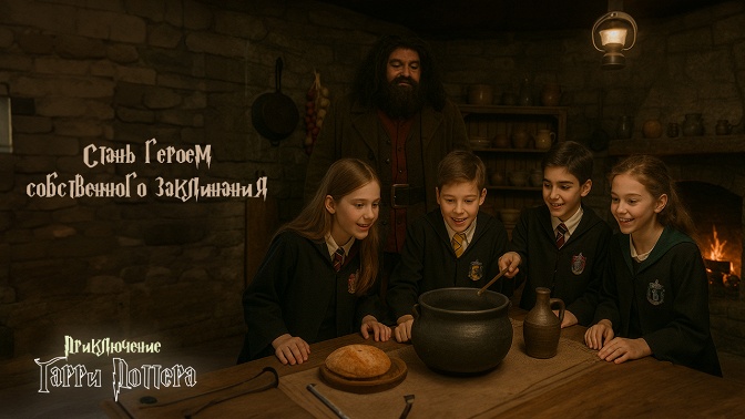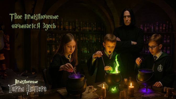 - «Приключение Гарри Поттера» — это погружение в легендарный мир магии, где каждый гость становится настоящим учеником Хогвартса. Вас ждут тайные коридоры, заколдованные предметы, светящиеся заклинания и загадки, которые под силу разгадать только настоящим волшебникам.