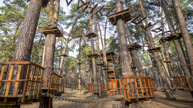 В стоимость купона на посещение по тарифу «СуперКомбо 7» входит: посещение 7 открытых веревочных маршрутов со страховочным снаряжением.