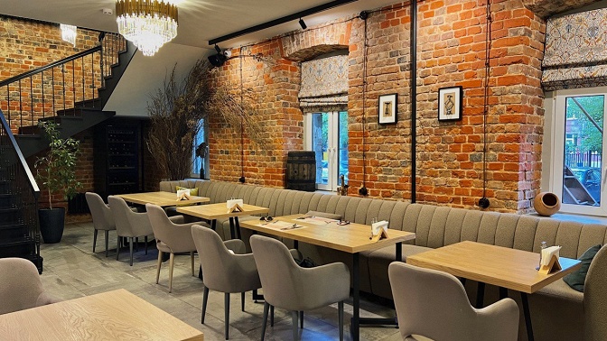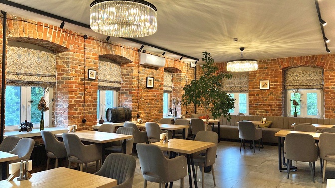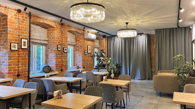 - Вас ждет зал с интересным интерьером и декором, который передает характер заведения и его атмосферу. В этой комфортной обстановке легко настроиться на спокойный отдых и на время забыть обо всех проблемах. Здесь вы сможете обсудить дела с коллегами, пообщаться с друзьями, провести время с семьей или устроить романтическое свидание. Вежливый персонал, быстрое обслуживание, большой выбор блюд и напитков — вы отлично проведете время.