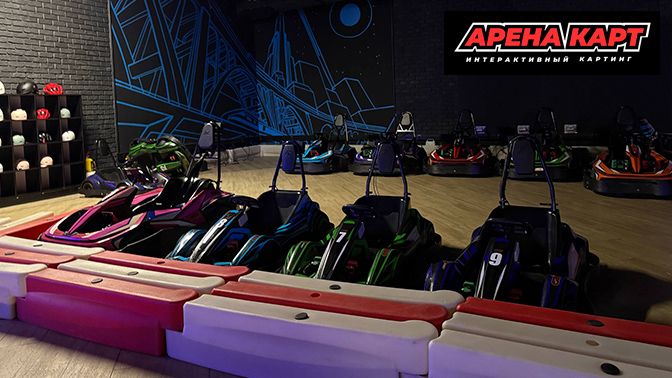 - «Арена Карт» — первый и пока единственный в России интерактивный картинг! Это семейный картинг-центр для детей от 5 лет (110 см) и взрослых.