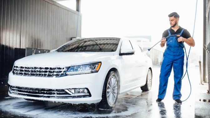 — нанесение специального состава на третьей фазе мойки автомобиля.