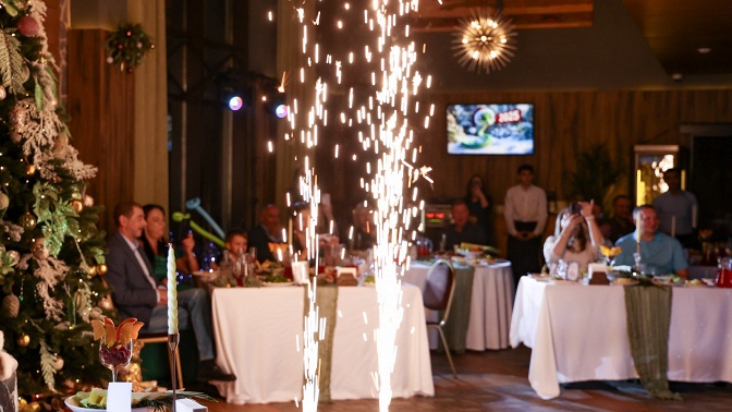 — затем гостей ждет праздничный новогодний банкет, море подарков, сюрпризов, праздничный салют и танцы;