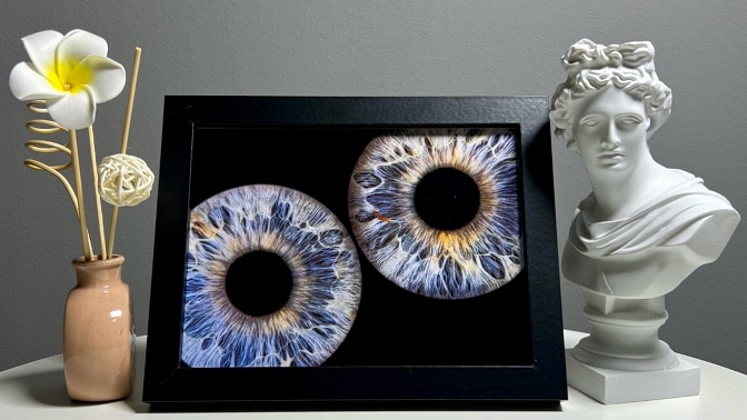 — Скидка 30% на парное фото радужек глаз без рамки размером А5 с эффектом на выбор (2 радужки) (1750 руб. вместо 2500 руб.)