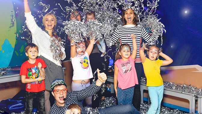 — Скидка 50% на безлимитное посещение в выходные или праздничные дни для ребёнка от 4–13 лет семейного развлекательного центра (100 руб. + доплата 945 руб. вместо 1890 руб.)