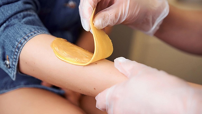 Во время процедуры восковой депиляции на кожу наносится разогретый воск, который после застывания удаляется вместе с волосяной луковицей.