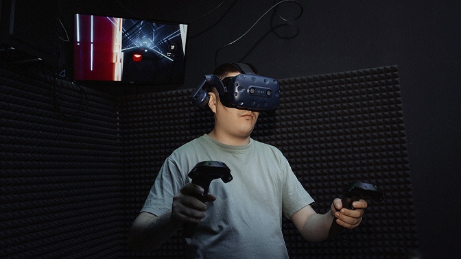 — игры проходят в шлеме виртуальной реальности HTC Vive;