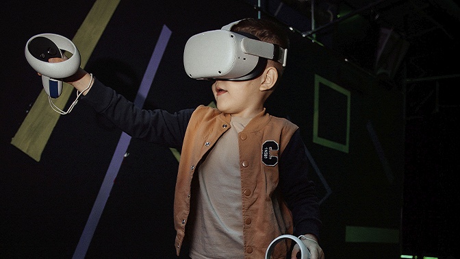 Комната виртуальной реальности — помещение, специально оборудованное для виртуальных игр. Техническое оснащение комнаты продумано таким образом, чтобы игрокам было удобно двигаться, а провода не мешались под ногами.