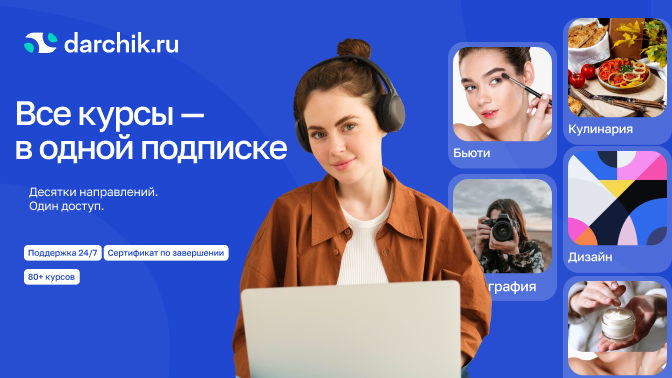 Darchik — это онлайн-платформа с курсами в удобном формате: видеоуроки, личный кабинет и мобильное приложение. Можно учиться в своем темпе, без дедлайнов, и начинать с нуля.