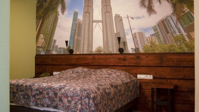 — одной двуспальной кроватью (комфортное размещение для путешественников, бизнесменов и даже молодоженов);