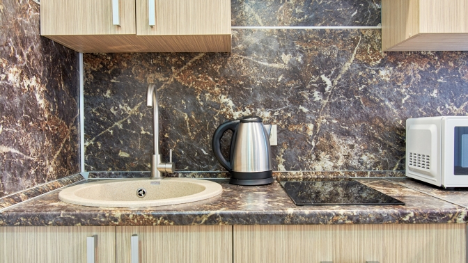 — во всех апартаментах есть оборудованная кухня со всем необходимым (плита, микроволновая печь, чайник);