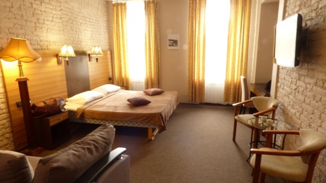 Постояльцы гостиницы размещаются в просторных и оформленных в классическом стиле номерах разных категорий. Каждый из них обладает эргономичным дизайном, оформлен в теплых светлых оттенках, оснащен удобной мебелью и доступом к Wi-Fi. Номера категорий эконом и стандарт оборудованы собственными ванными комнатами и кухонными зонами с необходимой техникой.