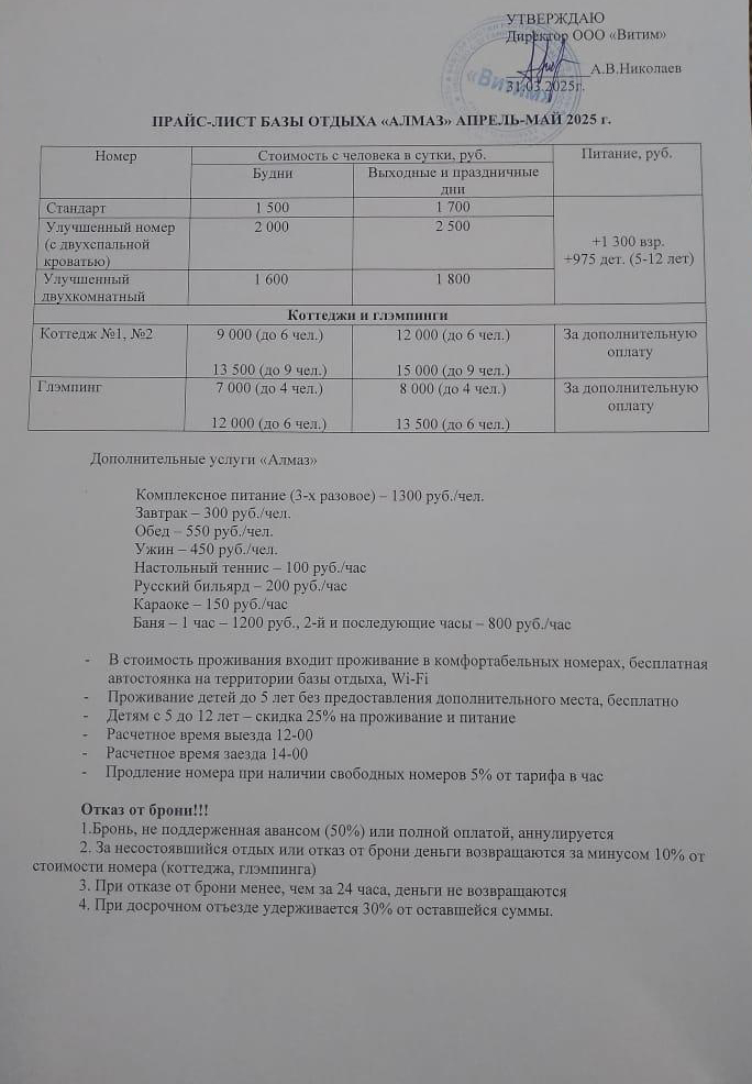 «Алмаз» — это прекрасное место для тех, кто ищет возможность сбежать от городской суеты, насладиться природой и провести время с близкими в тихой и уютной атмосфере.